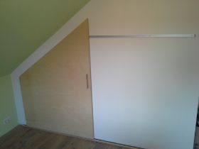 Schrankschiebetür Birke Multiplex begehbarer Schrank halboffen.