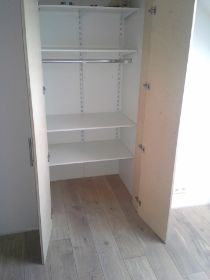 Schranktür Birke Multiplex begehbarer Schrank offen.